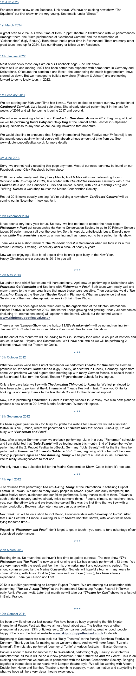 LATEST NEWS You can also follow us on Home Company/e Shows/e Itinerary/e Contact/e News/e